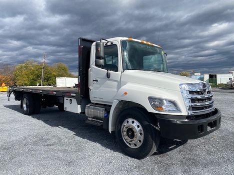2019 Hino 338 26' flat bed with a Hino J08E-VB 260HP, motor w/ exhaust brake, Automatic Allison 2500RDS Trans, 12/21 Axles, 33K GVW, 5.57 Gear ratio, Over Ride Trans, Cruise, 26' x 102 Supreme flat bed body with wooden floor, 4 body winches, tool box, 3000lb Waltco Level Liftgate, Pw windows and Locks, 133K miles - Clean great running truck!!